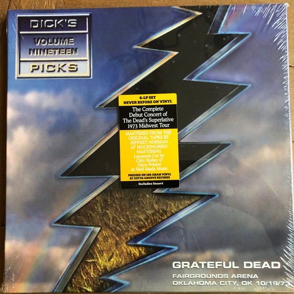 Hype sticker on front: 6-LP Set, Never Before on Vinyl, The Complete Debut Concert of The Dead’s Superlative 1973 Midwest Tour, Mastered from the original tapes by Jeffrey Norman at Mockingbird Mastering, Lacquers cuty by Clint Holley & Dave Polster at Well Made Music, Pressed on 180-Gram Vinyl at Gotta Groove Records, Includes Insert
